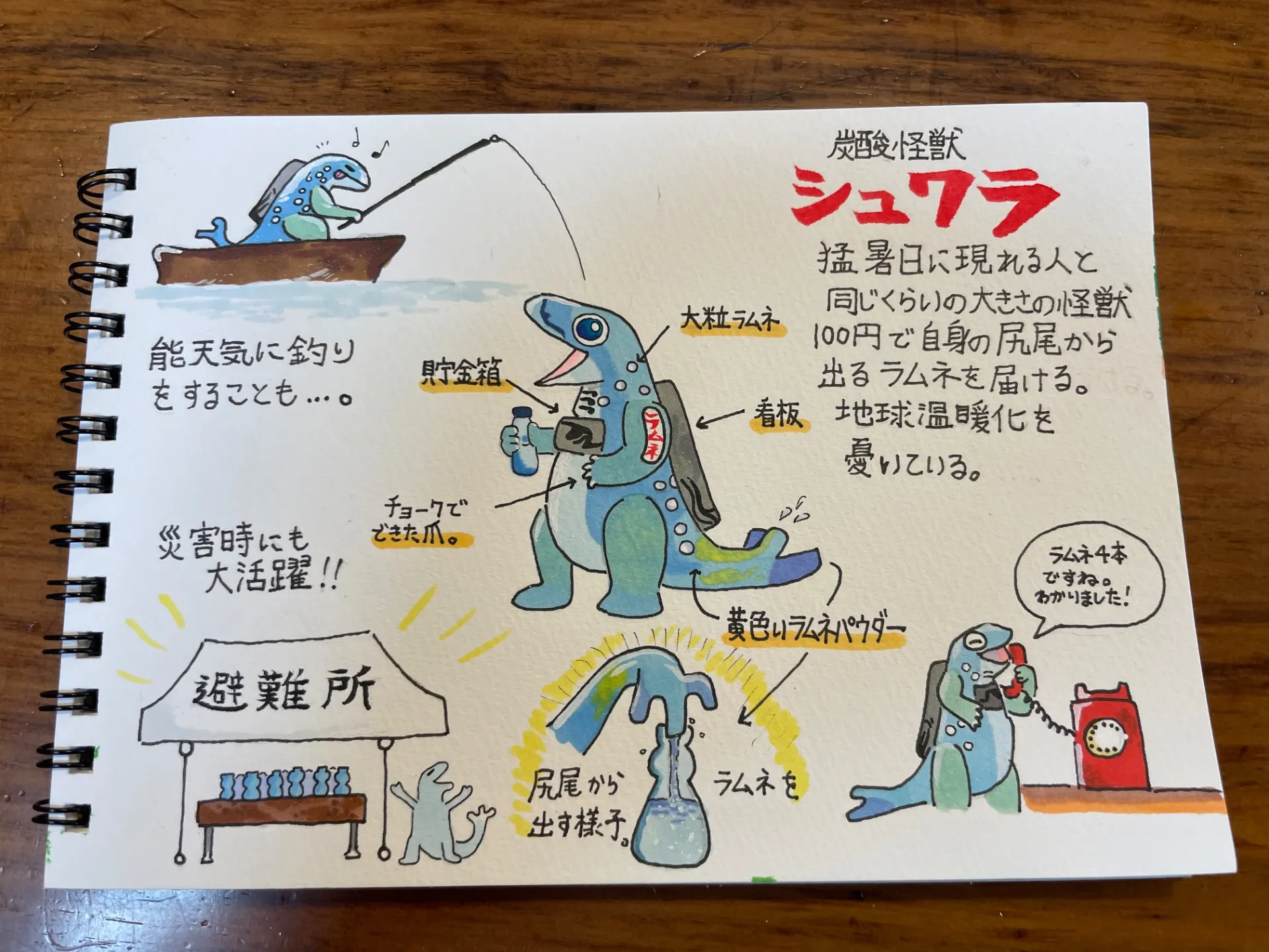 尻尾からラムネを出す「炭酸怪獣シュワラ」